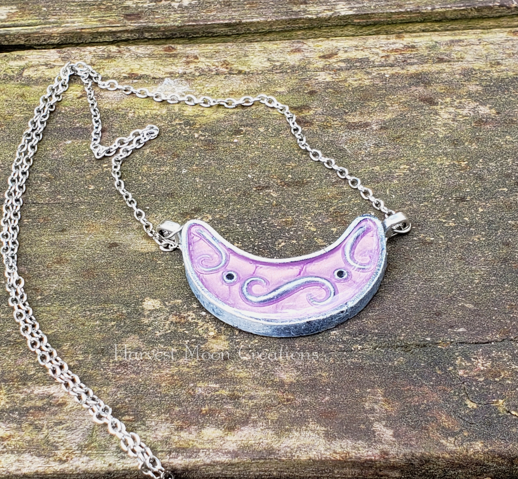 Handcrafted from polymer clay and resin, on 22 inch hypoallergenic chain.