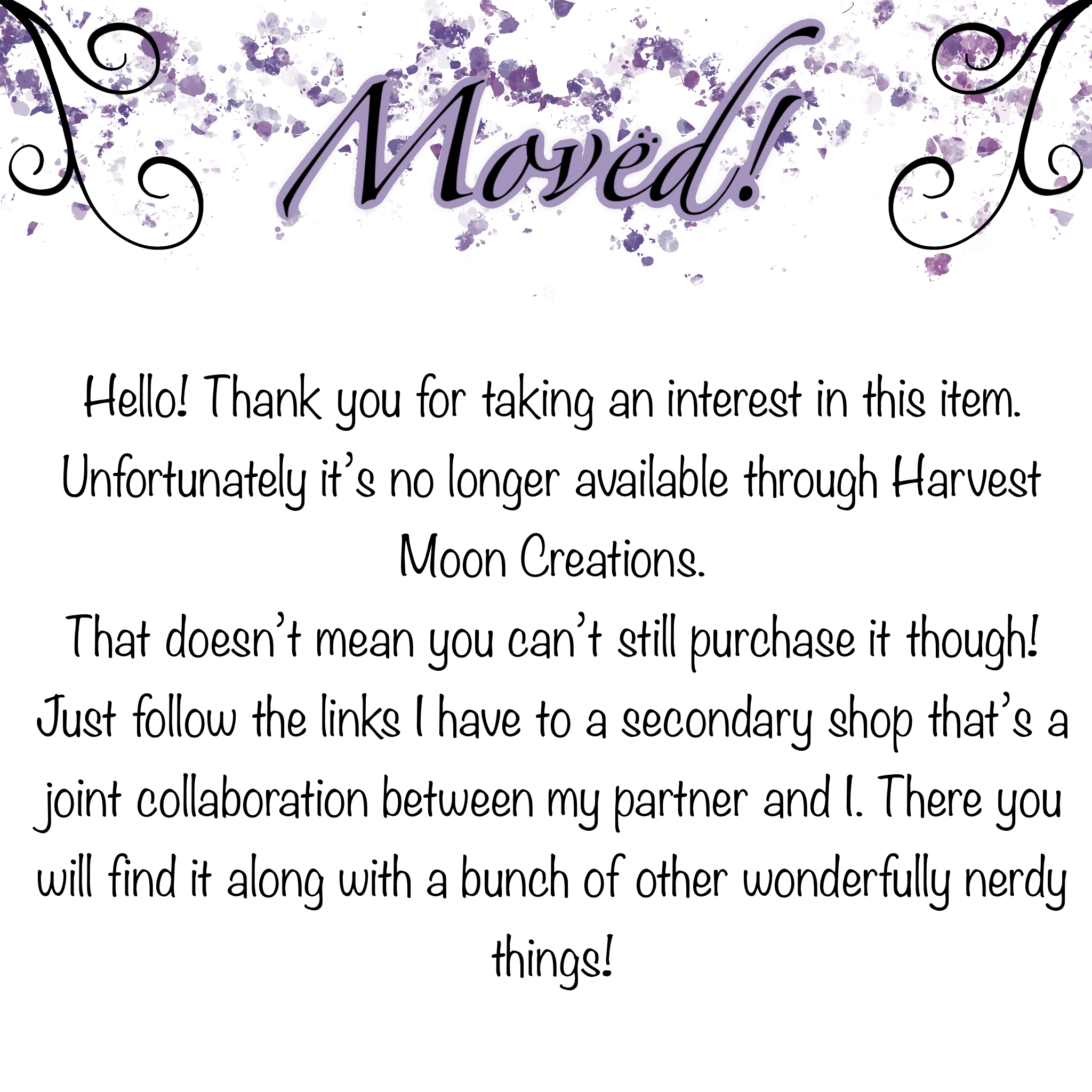 Unfortunately this item has been moved to another shop, a shop collaboration between my partner and I. Check out Nerd-Archives.storenvy