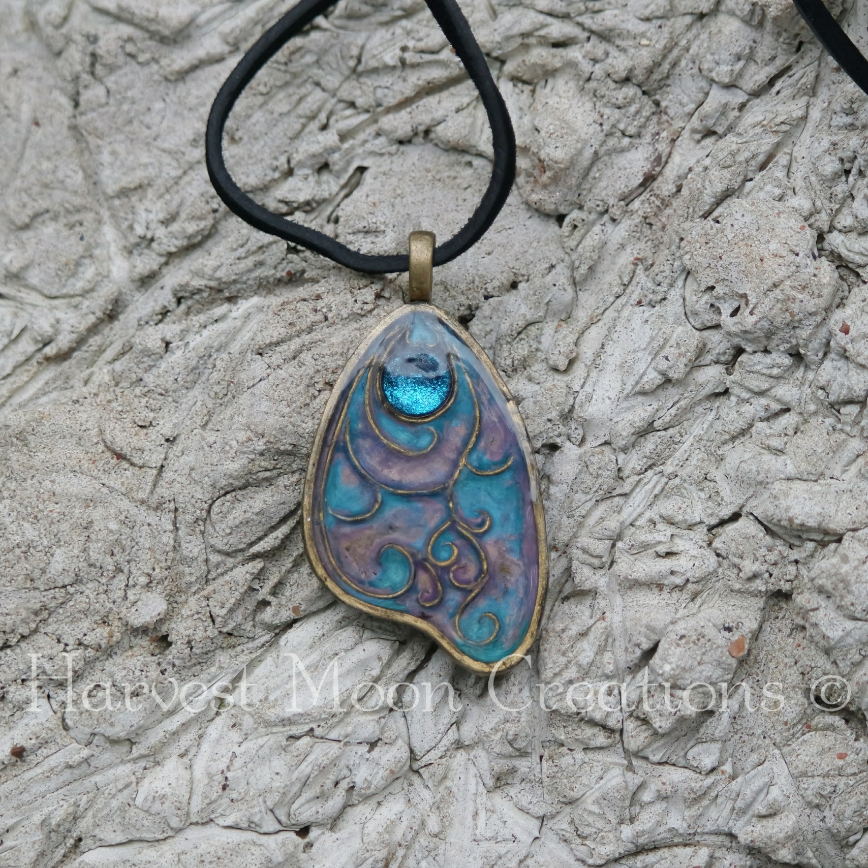 Completely one of a kind! Hand crafted from polymer clay. Strung on 22 inches suede cord.